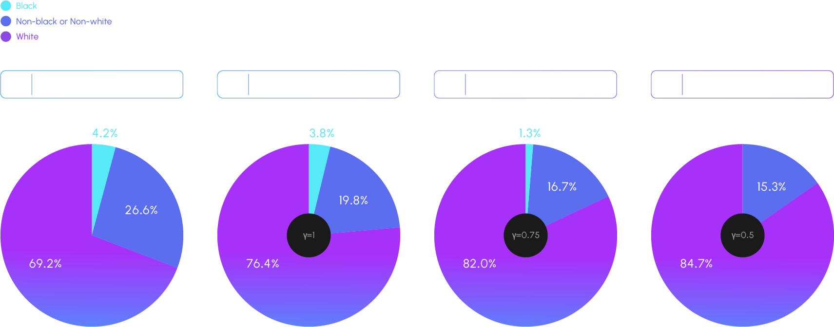 생성형 이미지 모델을 편향된 데이터셋 또는 다양성이 부족한 데이터셋으로 훈련하면 인종 및 성별과 관련된 인간 다양성의 전체 스펙트럼을 정확하게 나타내지 못하는 문제가 발생합니다. 훈련 데이터의 불균형 문제, 즉 모델이 다수 집단의 특성을 과도하게 반영하여 소수 집단의 특성을 무시하거나 제대로 표현하지 못하는 문제는 많은 선행 연구들에 의해 드러난 바 있습니다(참조 : Maluleke, Vongani H., et al. “Studying Bias in GANs through the Lens of Race.” European Conference on Computer Vision (2022)). 대부분의 얼굴 생성모델 관련 연구에 사용되는 대표적인 학습 데이터셋인 FFHQ는 인종적으로 백인의 비중이 69.2%에 달하는 반면 흑인의 비중은 4.2%에 그치는 등 극단적인 편향성을 보이는데, 특히 이미지 퀄리티를 높이기 위해 인퍼런스 단계에서 트렁케이션(Truncation)과 같은 기법을 사용할 때, 결과의 편향성은 극대화됩니다.