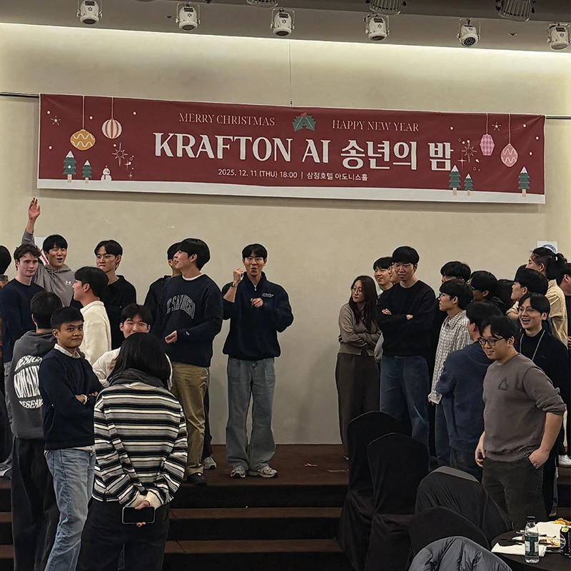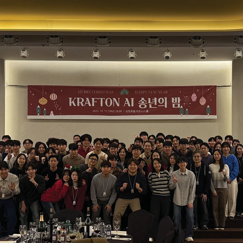 1년간의 인턴십은 제게 단순한 실무 경험 그 이상이었고, 이 소중한 시간을 함께해 주신 팀원분들께 깊이 감사드립니다. 앞으로 KRAFTON AI가 자사 IP를 기반으로 만들어갈 새로운 연구와 프로덕트들이 진심으로 기대되며 이전에는 상상하지 못했던 경험들이 게임과 AI의 접점에서 탄생하리라 믿습니다. KRAFTON AI 화이팅!